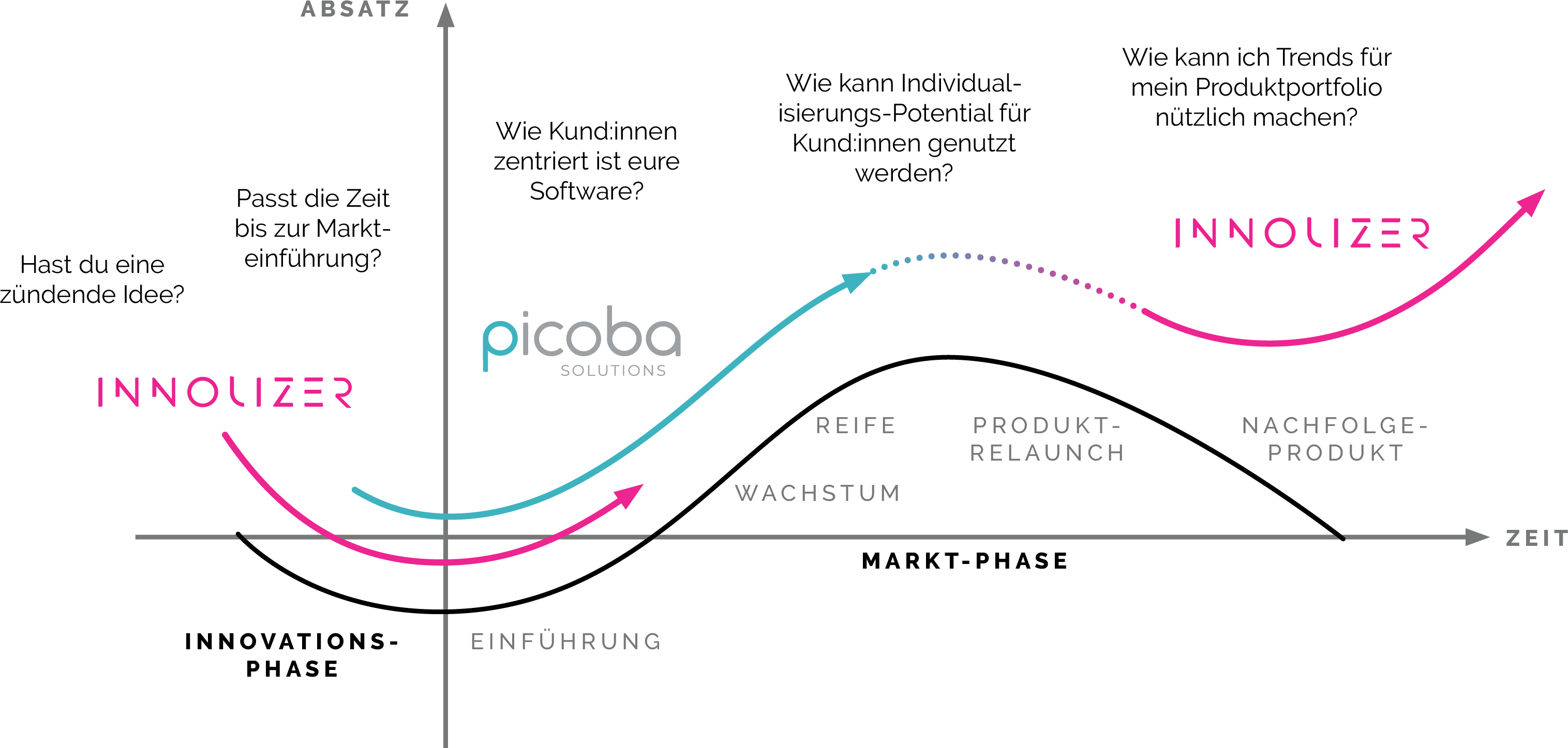 Die Synergie aus Innolizer dem Profi für innovative Digitalisierung und Picoba dem Profi für Software-Entwicklung, ermöglicht dir die Konzeption und Umsetzung von innovativen Produkten aus einer Hand.